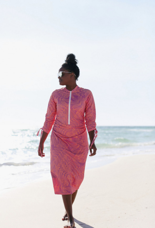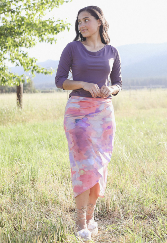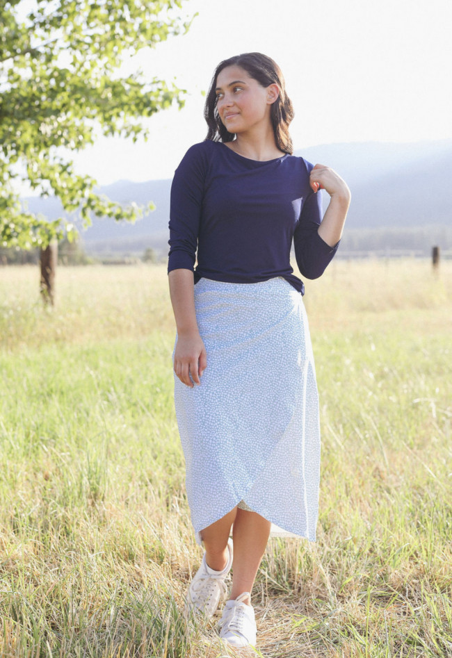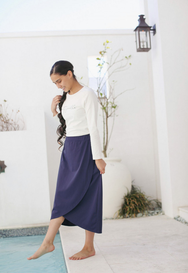 - Look for features that promote modesty. Some features to look for in modest activewear include high necklines, long sleeves, and full skirts to allow for easy movement. You want to be able to move but still be covered. Our Swimleisure line can double as activewear; stay completely covered and modest in the Chasing the Sunset Swimdress - a chic look for the beach or your evening walk! Our Tulip Swim Skirt (in prints and solids!) will keep you well covered for any workout! The built in leggings and faux wrap style allow for easy and worry-free movement.