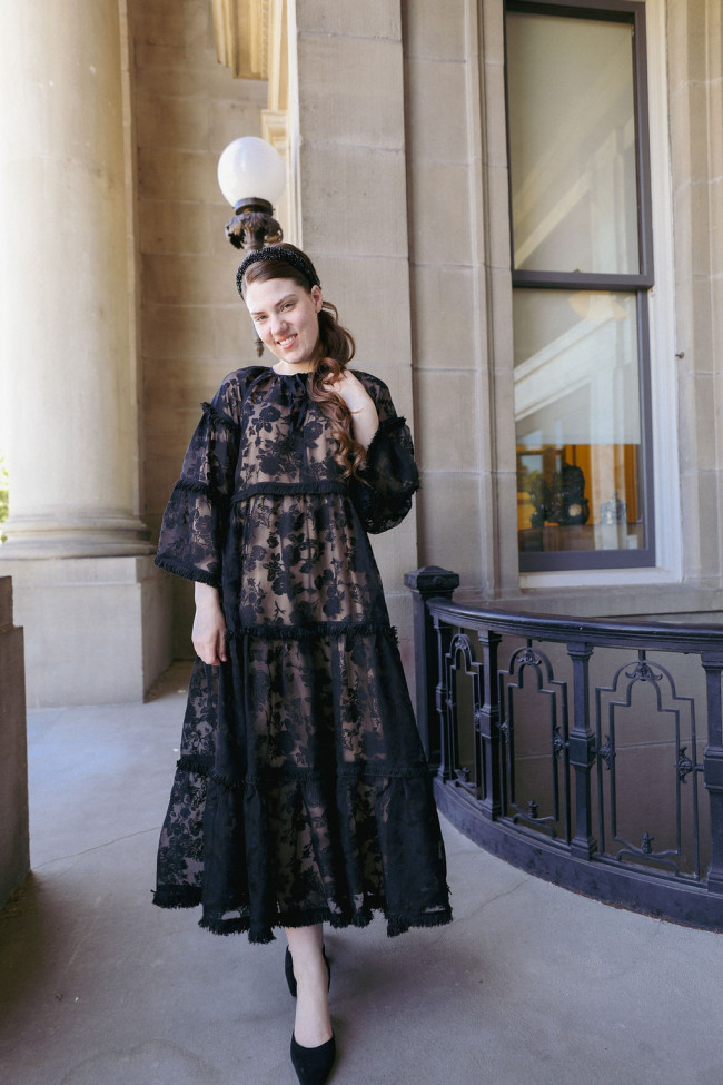 - Empire waist dresses accentuate the waistline and create a flowing silhouette. Consider a dress with a high neckline and long sleeves for a modest touch. The Bella in Black is a customer favorite and perfect for any occasion.