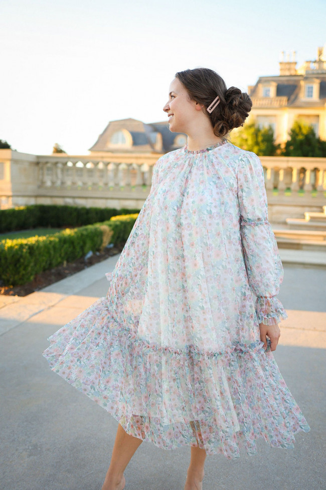- Long-Sleeved Tulle Midi Dresses: Flowing tulle dresses with long sleeves offer a timeless and elegant look. Choose pastel shades for a fresh spring vibe.