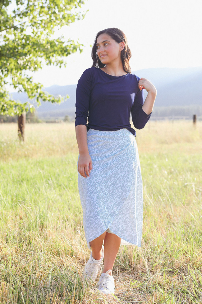 - The Magnificent Maxi Skirt: Maxi skirts are versatile pieces that can be dressed up or down for any occasion. This style works for any season and offers full coverage for transitioning from warmer months to cooler ones. You can't go wrong with a classic maxi skirt like the Chic and Simple Skirt in maxi length.