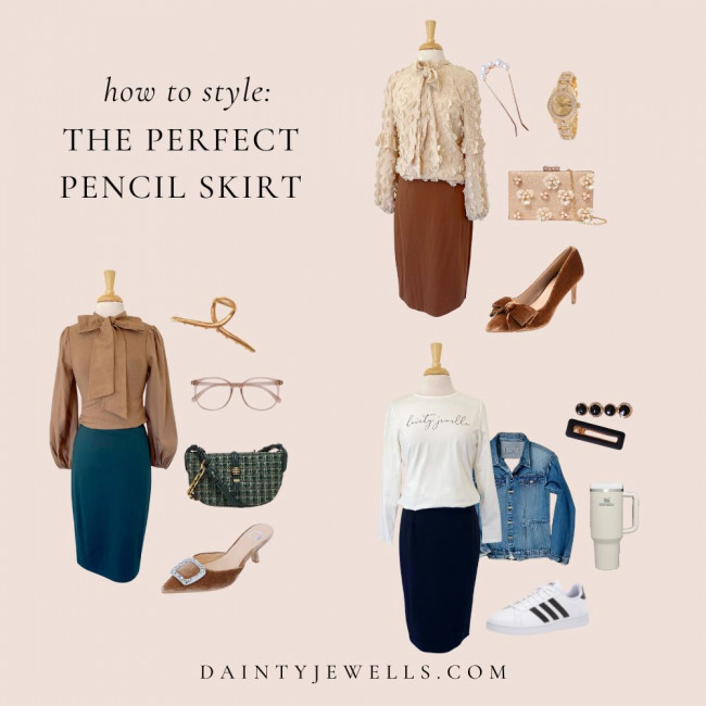 Every modest lady needs a few good below-the-knee pencil skirts in her closet! Choose a couple in neutral colors, like beige or black, that pair well with dressy blouses and heels or a sweatshirt and sneakers. Or grab a pencil skirt in a statement color to add personality to an elegant blouse.