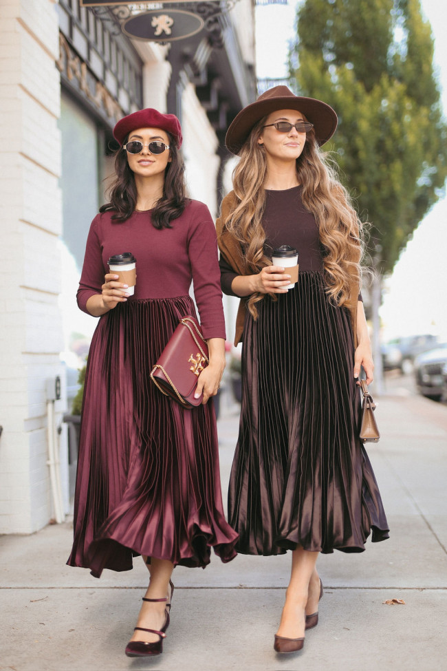 Fall naturally invites colors like deep burgundy, burnt orange, mustard yellow, olive green, cream, and rich browns. These hues not only complement the autumn scenery but also work wonderfully together in photos. For a modest look, opt for softer, muted tones rather than anything too bright or flashy.