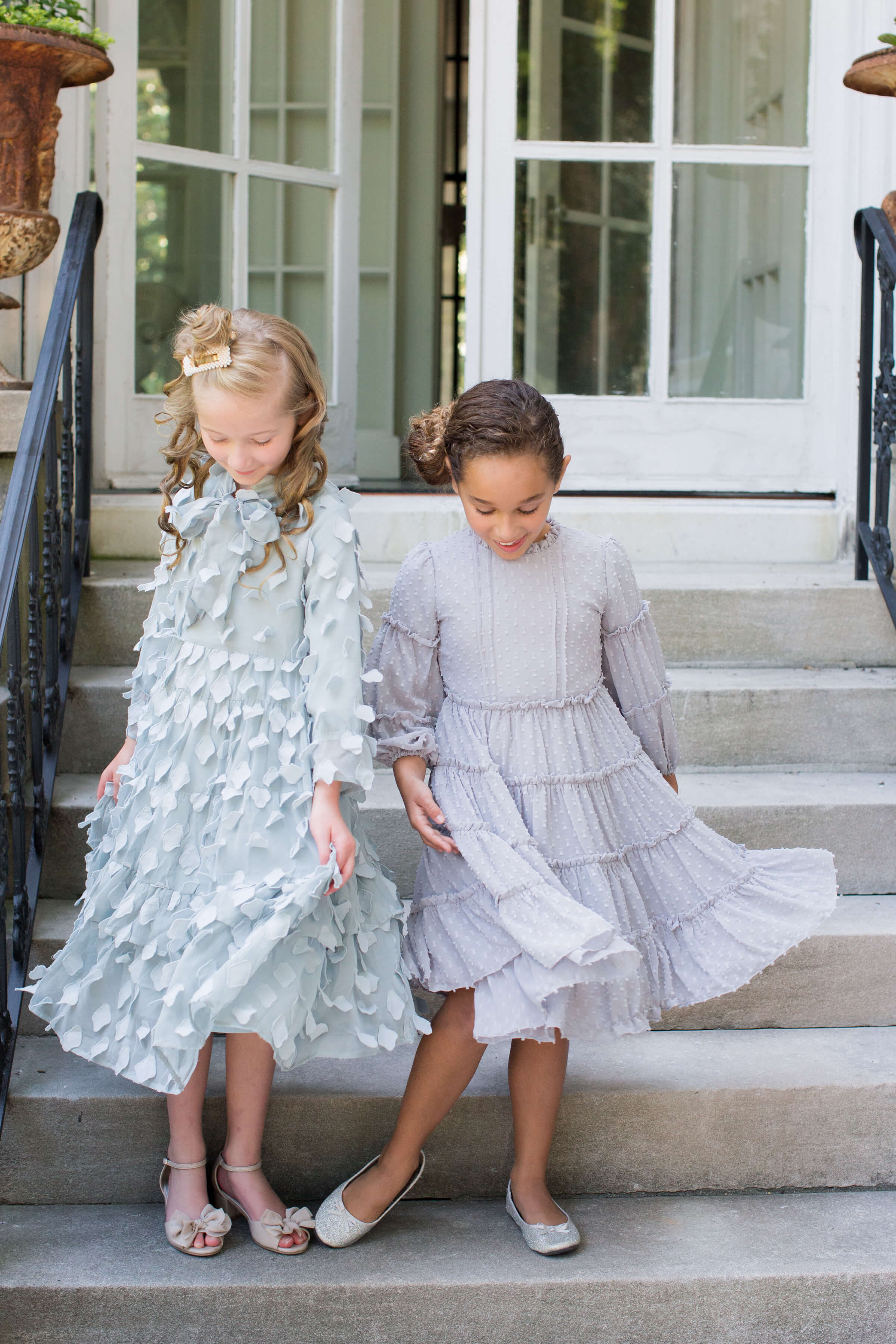 This beautiful modest dress comes in both women's and girls' sizes and was recently given the name "Morning Mist" by one of our social media followers. We thought the name was a lovely suggestion for this feminine, flowy dress with cascading petals and an overall enchanting vibe.