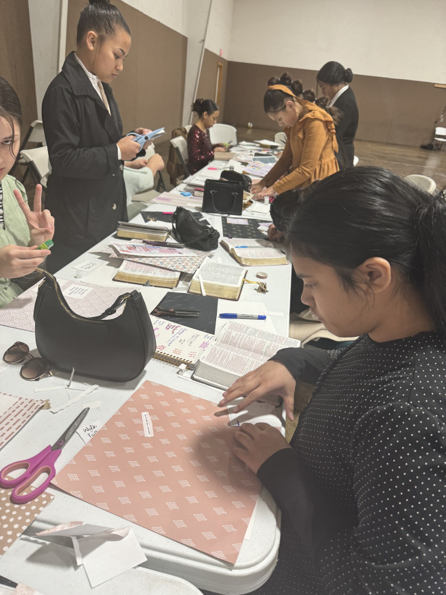 Instruct the girls to choose a large piece of scrapbook paper in whatever print they like. This will serve as the base or "board". Next, they can decorate the scrapbook paper with little quotes (pre-made or can write their own), scriptures, pick-me-ups, etc. The goal is to create a board that will encourage and be a strength to the girl throughout the year. If they choose, they can leave a large blank spot to write out their goals or New Year's resolutions later. Encourage them to be creative and create a board that they will enjoy using throughout the year.