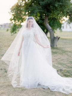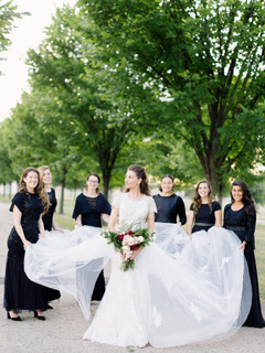 My train was actually detachable. It was custom made by a shop on eBay, and I feel that it completes the look perfectly. I really wanted the look to feel both unique and timeless. I drew inspiration from Audrey Hepburn in the movie Sabrina. If you know, you know.