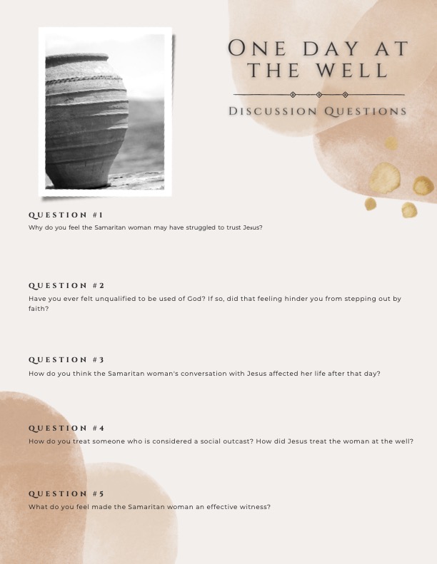 The realization struck her like a wall of ice water. The hope that had been dormant and buried beneath a mountain of guilt and shame nudged its way to the surface and would not be restrained. Her vessel forgotten, the Samaritan woman ran to share the news with her people.