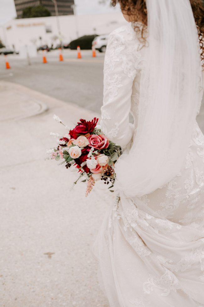 I found a boutique in Utah, LatterDayBride, that had a wide range of modest unique wedding dresses that required little to no alterations that were affordably priced. It was a dream! I found my dress on their website, and since Utah was just too far of a drive from North Carolina, I ordered it without seeing it. Crazy, I know. By the way, this company was so reassuring answering all my questions and making sure I got exactly what I wanted for my wedding day. When my dress came in it fit like a glove! I only had to have it hemmed slightly.