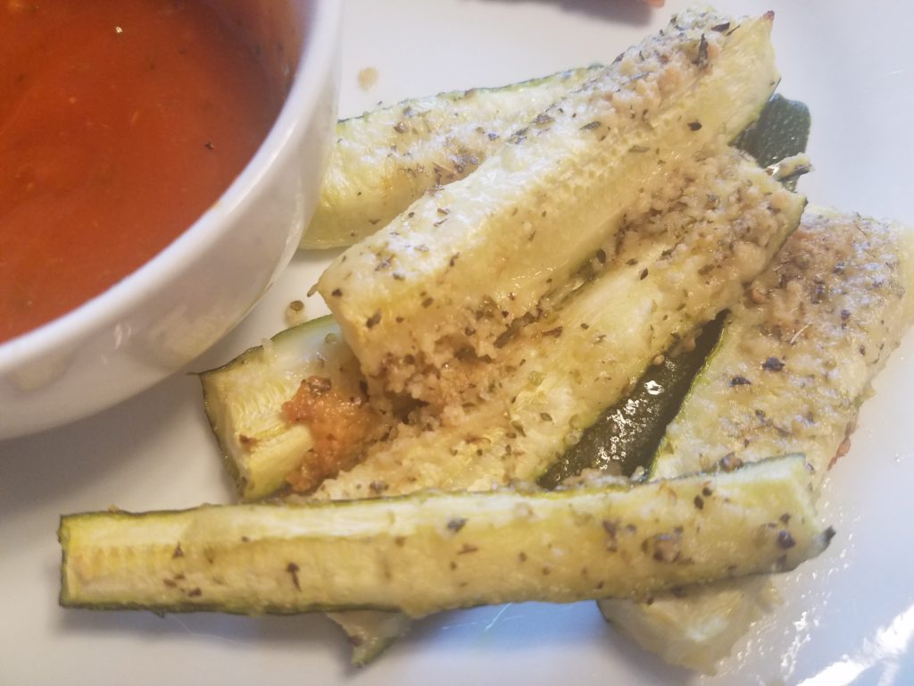 Tasty fries — without the guilt! My husband and I have been making an effort to eat fresh and lean this summer, and this recipe is a perfect side dish for a BBQ with friends and family. Baked zucchini is delicious on its own, but the seasoned parmesan coating just adds an extra kick of flavor!