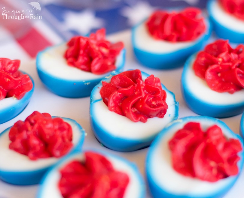 We’d also love to try these red, white, and blue deviled eggs by Singing Through the Rain — so fun for a July 4th party!