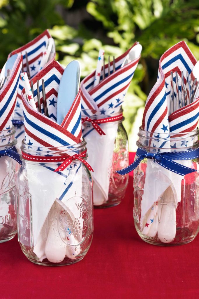If you love festive tablescapes, this cute idea from Woman’s Day requires only mason jars, napkins from your local grocery store, silverware, and a simple ribbon.