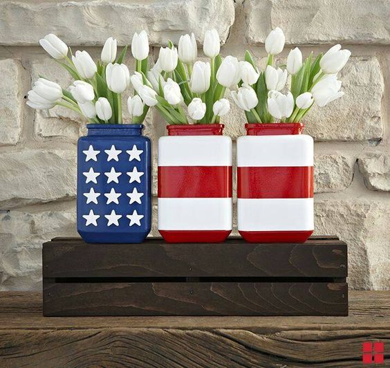 Mason jars have so many uses! Tulips and a little paint are all it takes to make this patriotic craft: