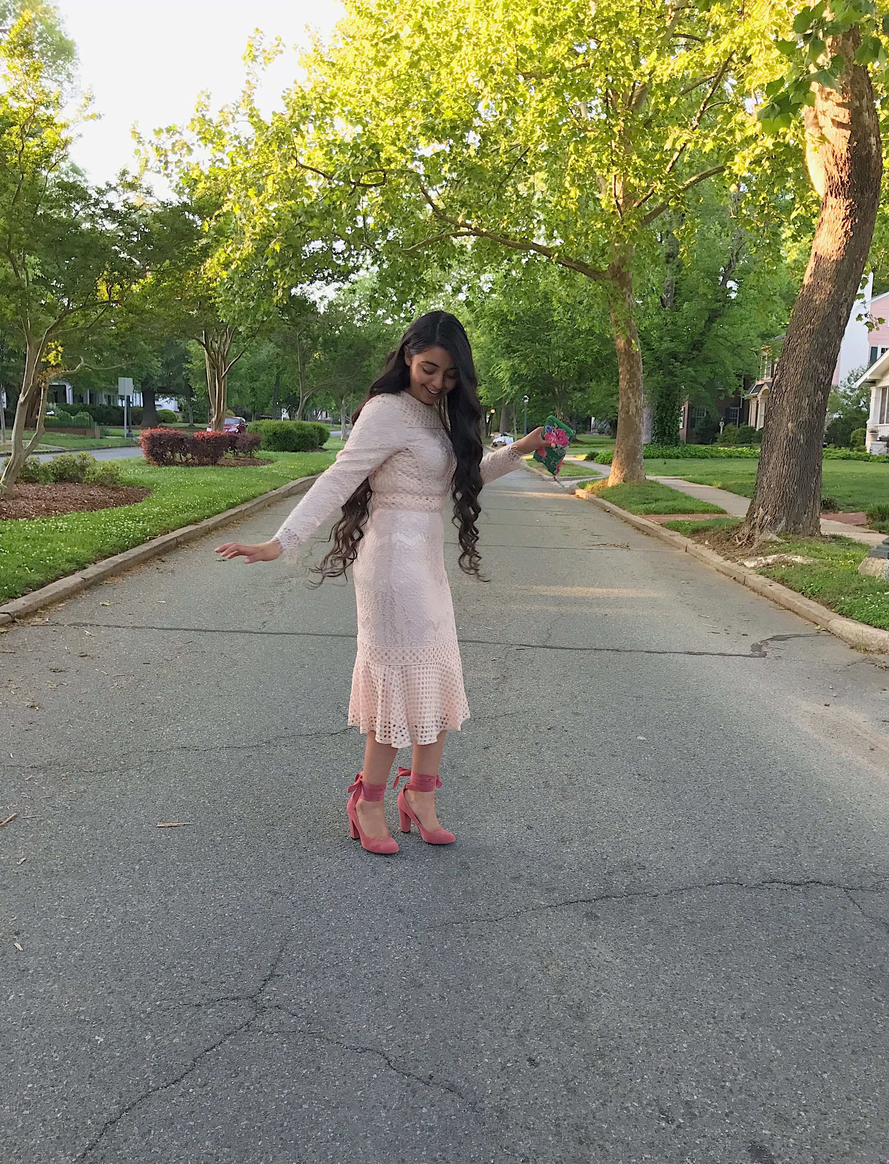 This dress is an easy go to for any Sunday morning, wedding, or formal event. It’s the perfect midi length and made of the softest and most comfortable lace. You will feel like a perfect lady and still be absolutely comfortable! The lining is light and soft as can be, and keeps you cool throughout the day. I think we all know that I have a weak spot for details and textures. That being said, this dress has it all! The skirt flares perfectly at the bottom, the details around the top are just perfect, and there is a mix of textures and fabric that has me swooning (insert all the heart eyes please!).