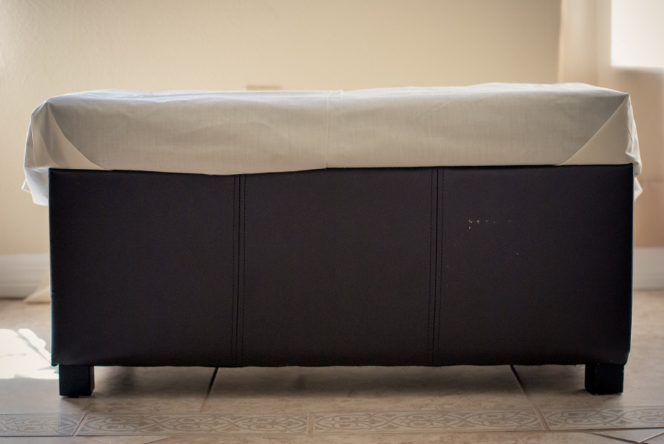 As you can tell, the ottoman we purchased five years ago has seen its better days. I really didn’t want to lose such a great, conspicuous storage piece though, so I decided to reupholster it myself. It might sound complicated, but it was actually very easy. With just $20 and two hours, this project was completed!