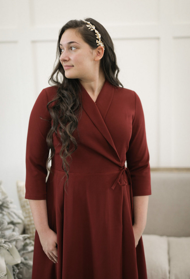 The Classic Wrap Dress: This universally flattering style cinches the waist and creates a beautiful hourglass shape. Look for dresses with a midi-length skirt and a v-neckline for a timeless and polished look. The vintage design of the She Walks with Grace dress creates a timeless and slimming silhouette.