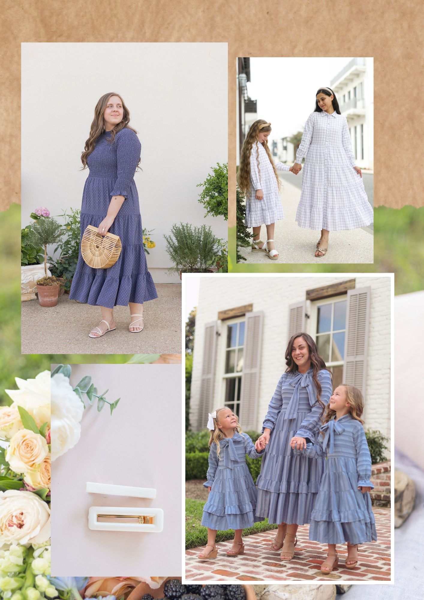 Featured Items: Take a Twirl Dress | Weekend Waltz Dress for Women & Girls | Modern Muse Hair Clips | Manchester Mornings Dress for Women & Girls