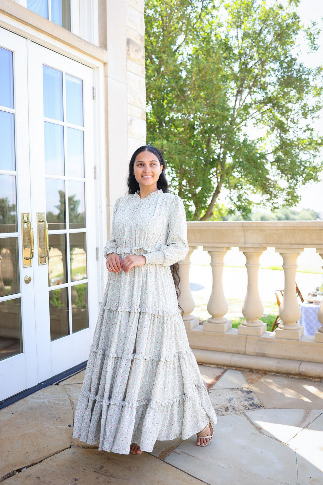 Spring and florals go hand-in-hand and give such a fresh look to a spring wedding. A maxi-length dress with a soft floral print and a subtle A-line silhouette is both on-trend and modest. Consider options with sleeves (three-quarter or long) for added coverage and warmth on potentially cooler spring evenings. A modest V-neck or a round neckline are excellent choices.
