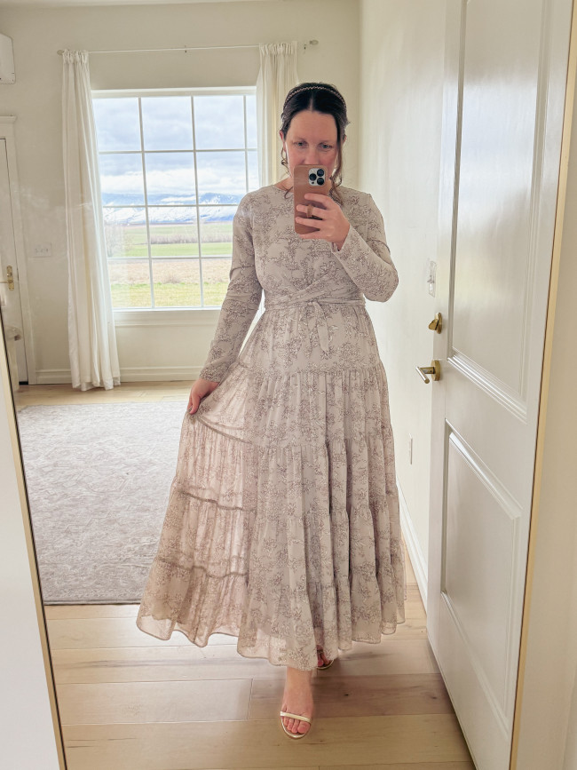 Every closet needs a modest, floral shirtdress, and this soon-to-be-released design checks all the boxes. With functioning buttons for a nursing-friendly option, this dress is simple, comfortable, but completely lovely for Spring.