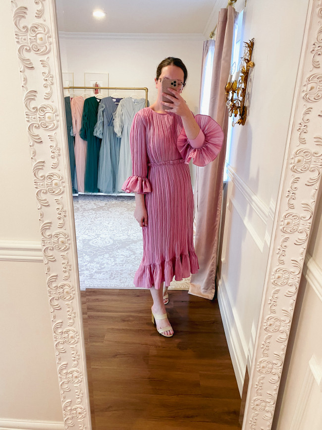 Here's another sneak peek for you! We expect this pleated midi dress to be a fan favorite once it releases. The fit is flattering and the ruffles and pleats are completely girly, yet absolutely classy. Stay tuned for this dress to release soon! It might even come in multiple colors. :)