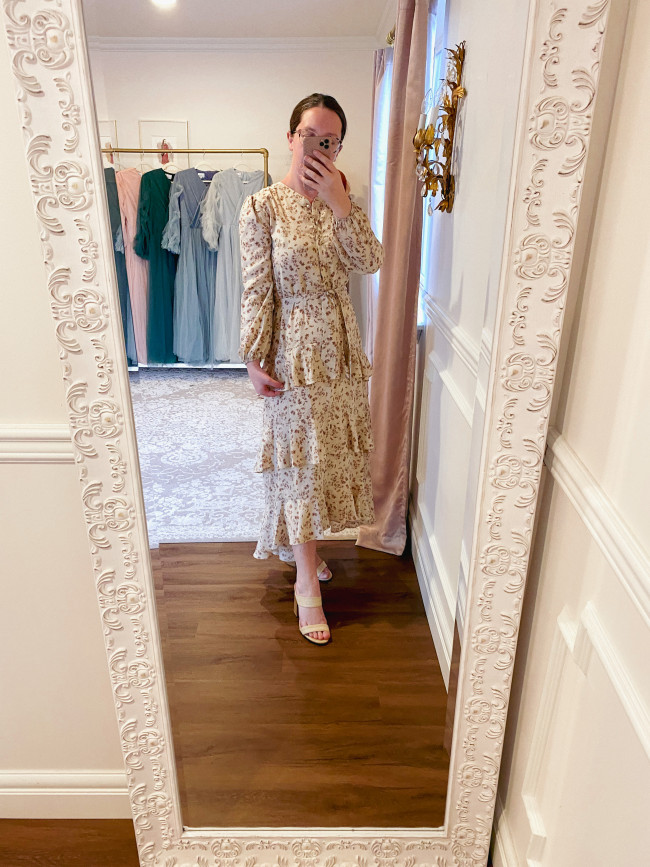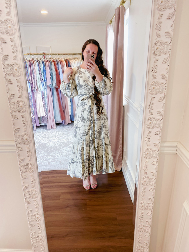 The Fate Found Us dress is another nursing-friendly option this season. The dainty floral print, asymmetrical ruffles, and modest hi-lo design make for a lovely dress that can be worn to a variety of events this Spring.