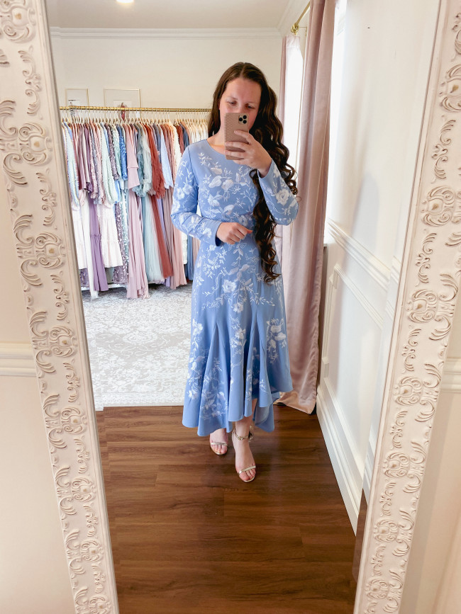 The Endless Blue Skies dress, with its handkerchief hem and white embroidery, is one of Dainty Jewells' most stunning designs to date! Engagement photos, Mother's Day, Spring or Summer weddings are just a few events where we expect to see ladies wearing this elegant number.