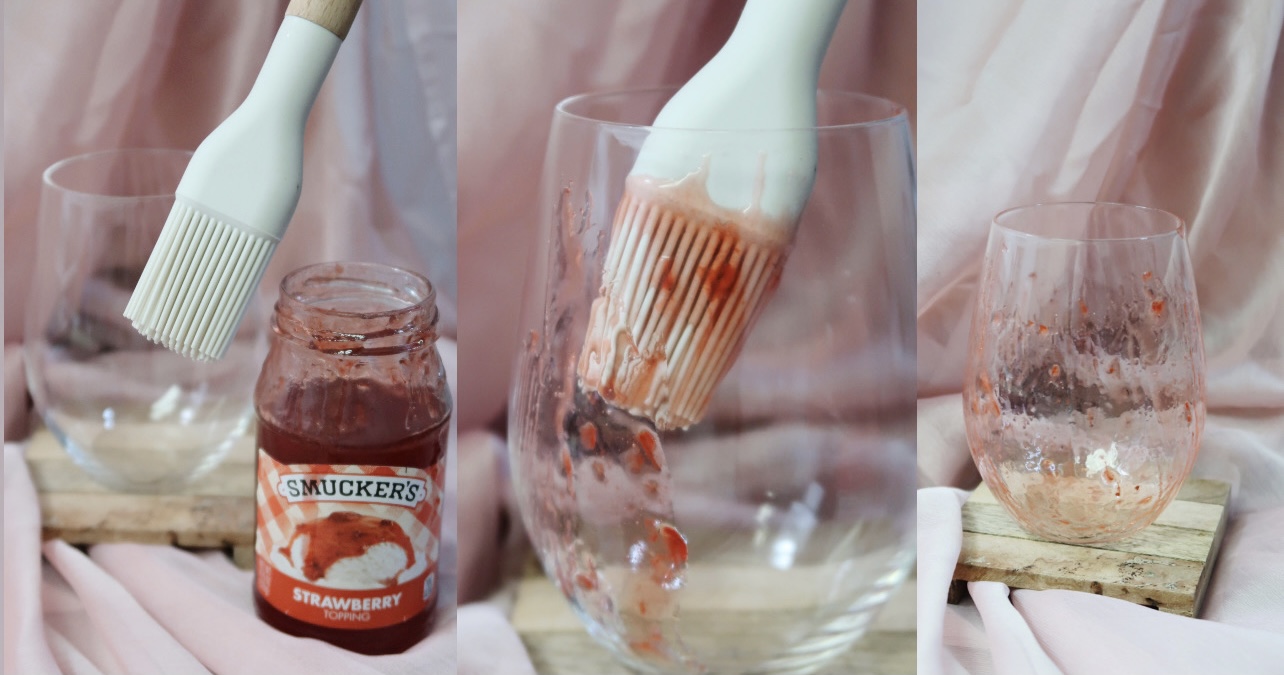 First brush the strawberry sauce all inside the cup.