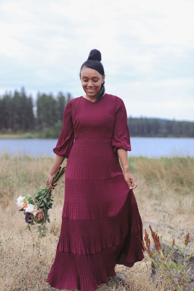 - Dress Length: Keep your dress length in mind for an elegant, modest look. Opt for maxi length for a more formal wedding. Go for tea length or midi length for sweet, more casual weddings.