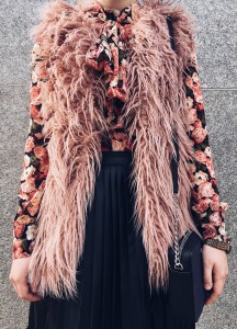 And so for my “Sprinter” outfit, I paired a little piece of Spring, a bold floral blouse from XXI, with a ridiculously fun, fur vest from Target.