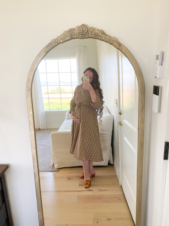 Our Bella dresses have long been maternity favorites, and the autumn version of this dress, the Merry Meadow dress, is no different. I love how easy this dress is throw on and go, while still looking lovely!