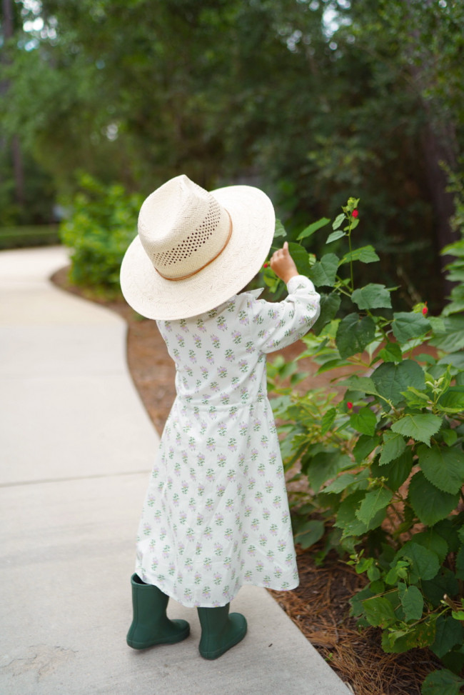 Our friend, Amy, recently styled the Sweet Tea & Honey dresses for her and her little girl. This mommy and me duo went for a summer garden look, complete with straw hats and matching green rubber boots. We love these outfits to transition from late summer into early fall or for a summer garden party. These stylish, midi-length shirt dresses can be dressed up or down and layered for multiple seasons. Check out Amy's instagram @amy.wyant for more Dainty Jewells style inspo!