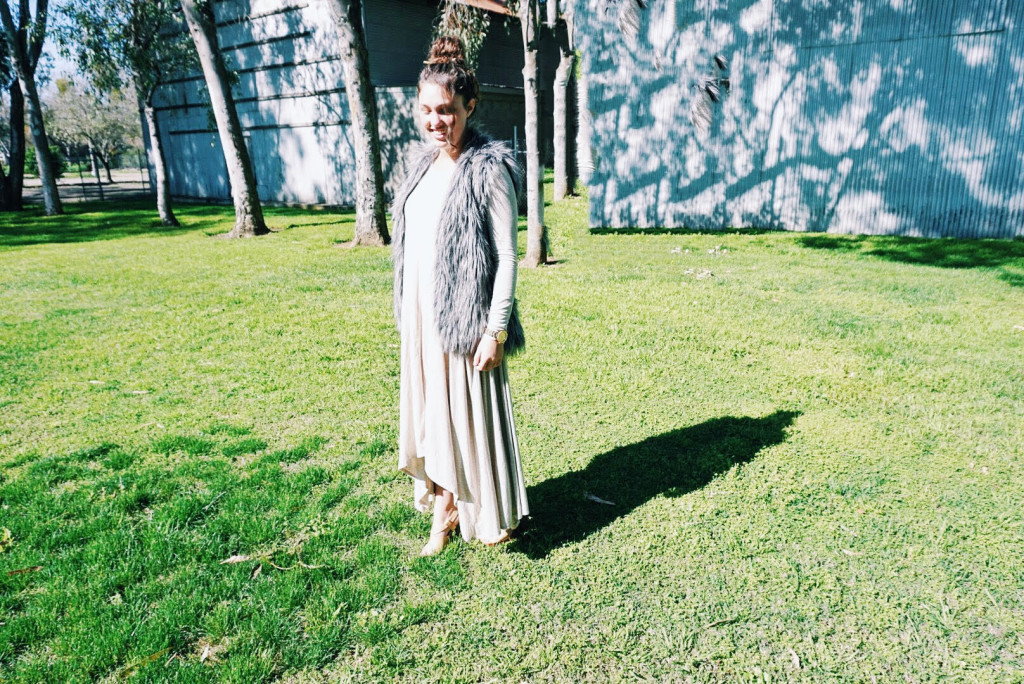 When it comes to picking out an outfit, I usually lean towards something easy to throw on, but is still stylish and comfortable. For today’s outfit, I chose the extremely comfortable and modest dress from ChicStyleBoutique. It’s one of those staple pieces in a closet that all girls need and is so versatile! I didn’t want to feel too “plain,” so I decided to add my fur vest to the outfit. It is another one of those fun staple pieces that just has to be in your closet. I find that I wear it more than I realized I would when I first bought it. You can find a similar one here. Lastly, I chose my nude, chunky heeled sandals similar to these. These shoes are comfortable, tie in great with the rest of the outfit, and also helps keep my dress from dragging the floor (short girl problems)!