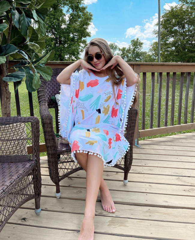 Mariah (@Mariahbrianne) is modeling another fan favorite - the chic circle swim dress. This pattern is from another collection, but we do have a few left in the same style. Check out the Under the Palm Trees swim dress.