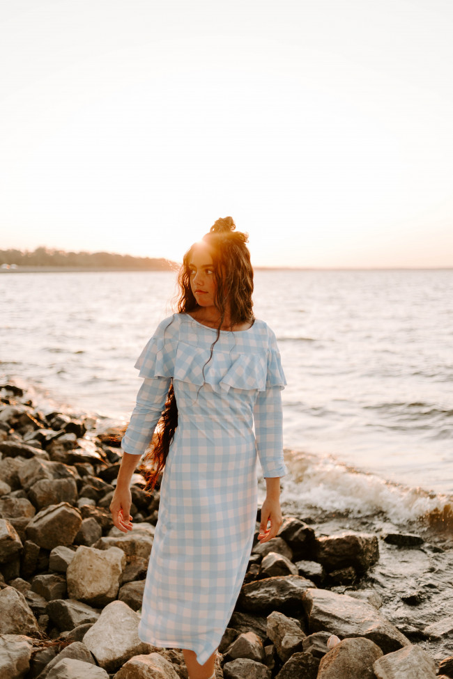 Gracie from @graciesgem is modeling a fan favorite, the Weekend in Nantucket dress. We love how this looks on her! The sweet light blue gingham print makes us think of picnics and fun-filled days. There are only a handful of these dresses left on the site, so grab them up before they are gone!