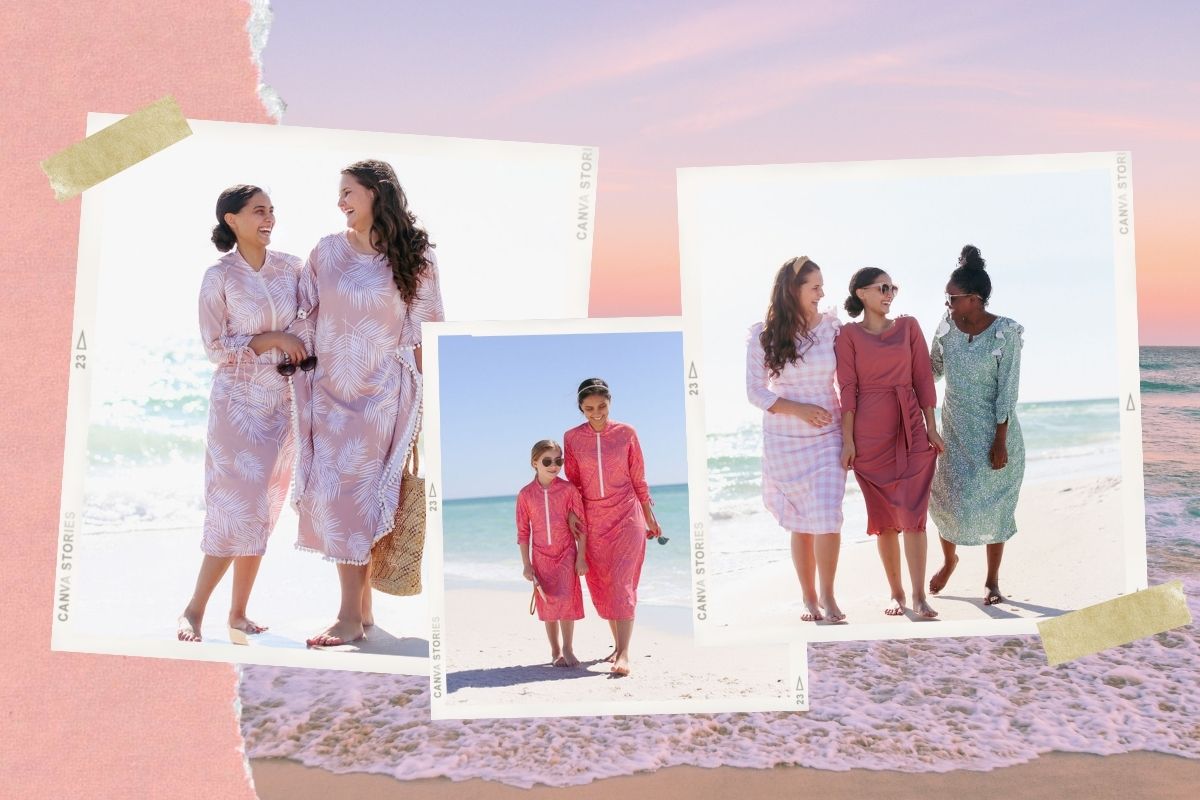 Whether you have a tropical vacation planned, are spending the weekend at the lake, or even just enjoying the backyard, our modest, stylish swimwear will take you there! We intentionally design our swimwear to be worn in and out of the water. They’re functional for water fun, and, after a quick dry, you’re ready for dinner with family on the marina! No need to change from one activity to another; no one will ever know your dress is actually a swim dress!