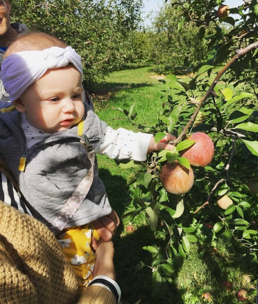 This was my baby girl’s first visit, and she had a blast. She just turned 6 months old, and it’s so fun to watch her experience fun places like this for the first time. She was in love with the animal barn and even got in on the apple picking!