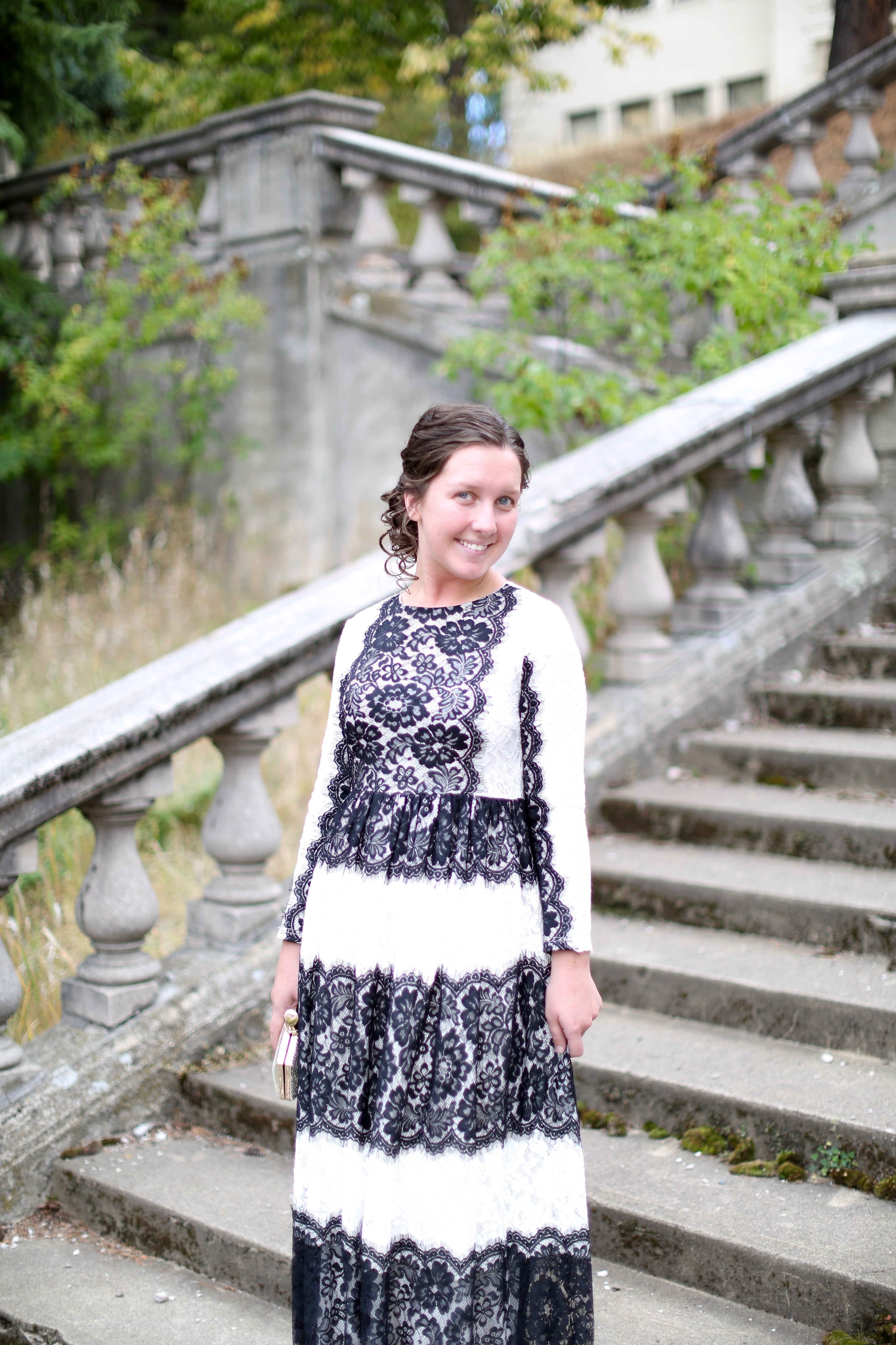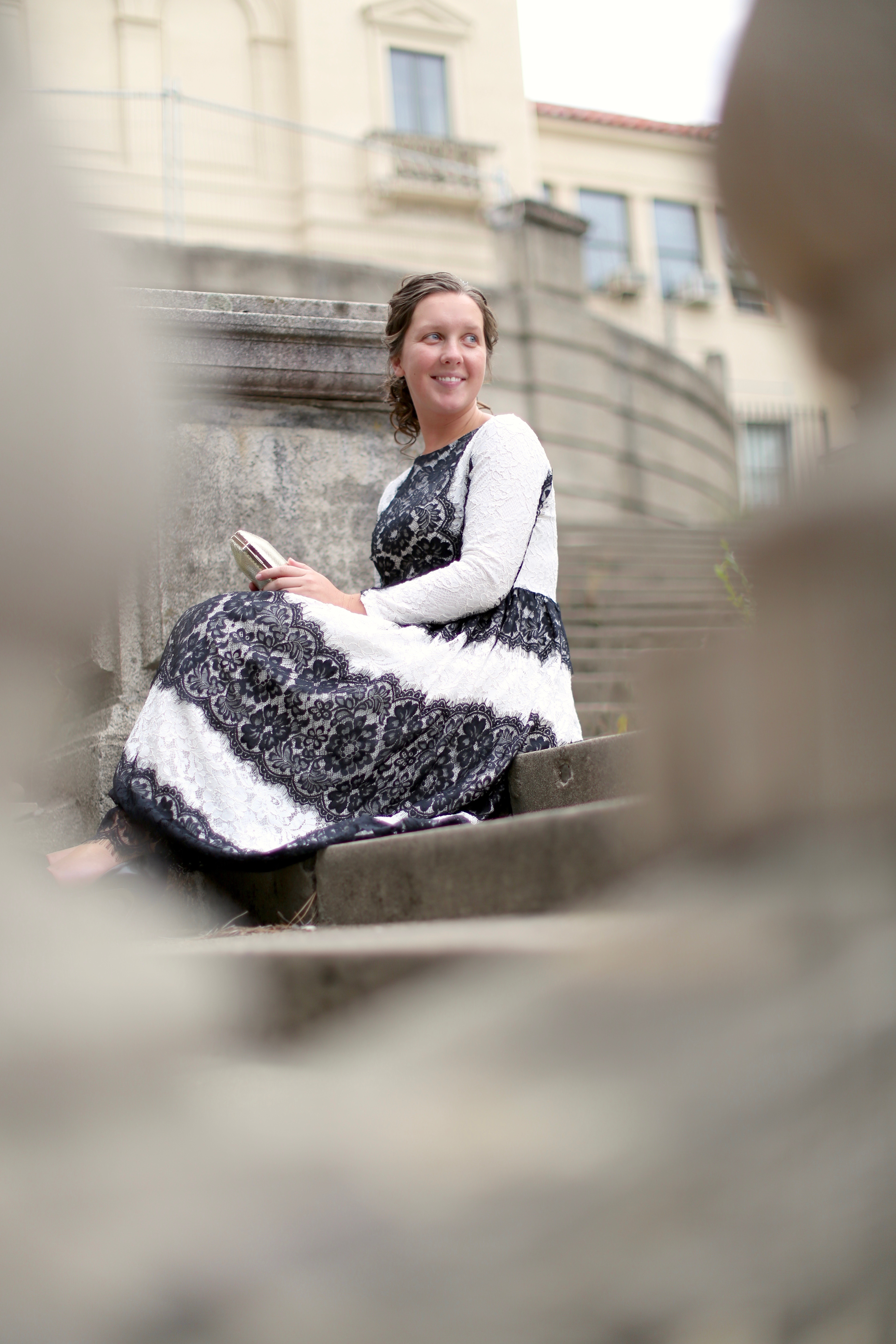 The name has a fitting ring to it, don’t you think? Nichole, Jennifer, and I end up naming most of the dresses ourselves, and when I heard this name, I knew it was the perfect match. First, the lace on this dress is literally exquisite — I mean, seriously! By definition, exquisite means “extremely beautiful and, typically, delicate.” And symphony makes me think of how members of an orchestra come together in harmony and play flawlessly together, making a sweet-sounding symphony even though the musicians are all from different places. In the same way, this dress consists of two laces that are completely different in pattern and color, yet they work together for a breathtaking effect. It reminds me of how God takes pieces of our lives that may not be pretty or may not stand out in and of themselves, and He meshes them together into a stunning masterpiece.