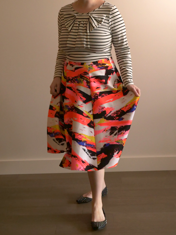 I love mixing prints! The Striped Bow Top is perfect for this! You can go bold with a look like mine, or add a subtle dot or floral printed skirt. And don’t forget the fun shoes!