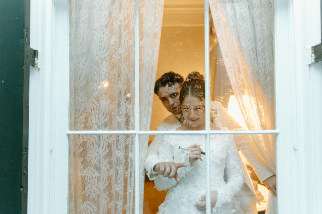 AC: One of my favorite moments was standing at the end of the aisle with my dad. We’ve always had such a special bond, and it was incredibly heartwarming to share that moment with him. Another memory I’ll always cherish is the tradition at our venue, where every bride carves her new initials into the original glass pane from the house, which is still in the front right window. I was able to do this with everyone watching, and it’s a sweet memory I will never forget.