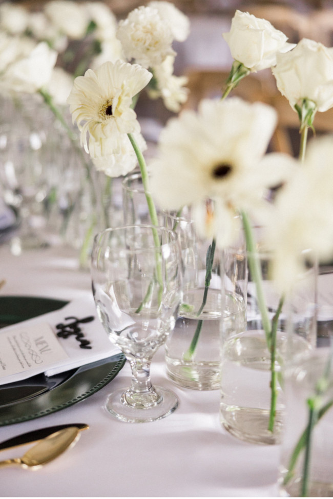 KG: For our wedding I wanted a timeless theme. I wanted to be able to look back years from now and not regret choosing trendy colors, decor, or anything that would soon be outdated. As for the colors, we went with black and white with a touch of emerald green for the bridesmaids' dresses.
