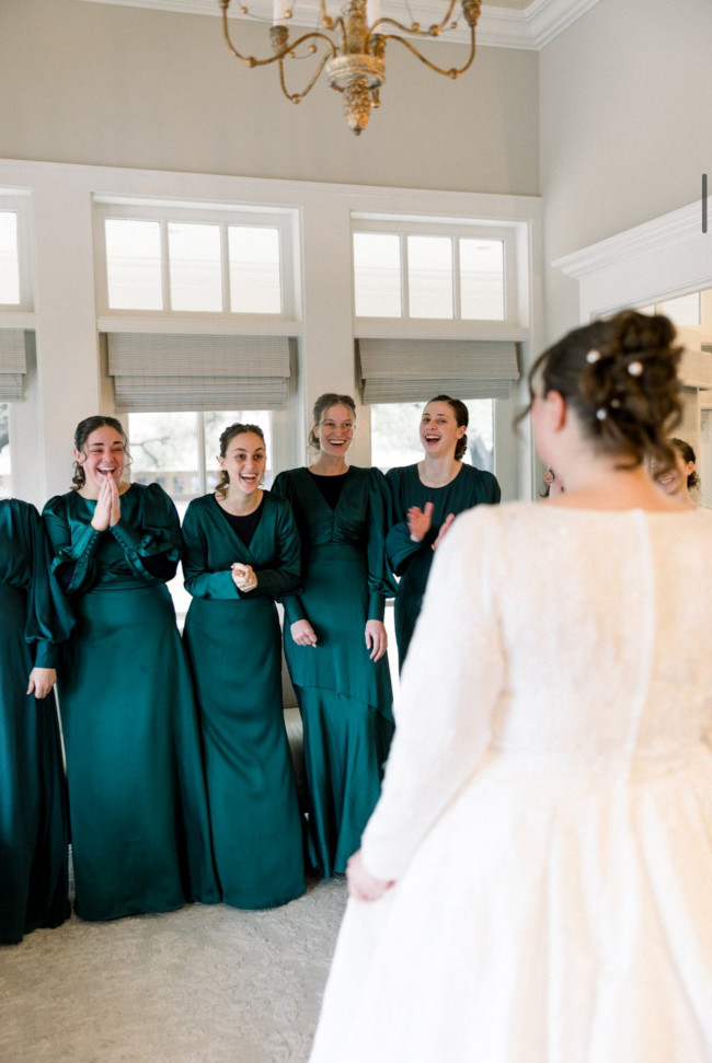 KG: With our crew, there is hardly a dull moment. One that sticks out to me was that we all had to enter the reception together, on the second floor, by an elevator. We had 16 people all on one small elevator and were trying to time our entrance with a song. We entered dancing and yelling and everything was so perfectly chaotic.