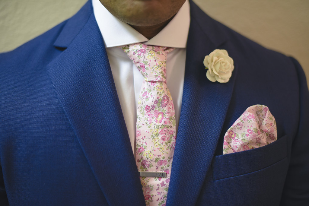 We changed our wedding date once, our colors twice, and we spent more time trying to find ties, hankies, and lapel pins for the guys than anything else. Gabe ended up picking out all of the groomsmen’s attire. The easiest thing to find was the bridesmaids’ dresses. Thank the Lord for Dainty Jewell’s!