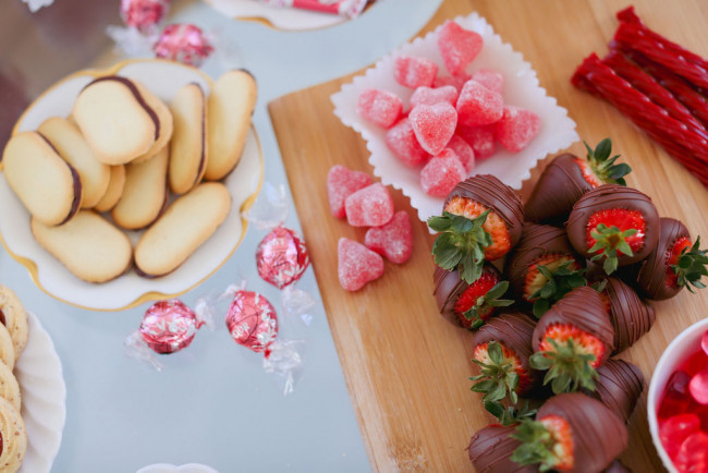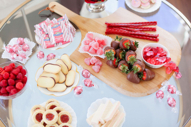Usually around Valentine's Day, stores will be running sales or have coupons for sweets and candies; by shopping discounted items, you can save money on an otherwise fancy spread! Another place to shop is your local Marshall's or TJ Maxx. These stores typically carry specialty items at a fraction of the regular price.