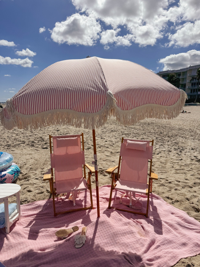 There is so much to do in Florida, but we especially enjoyed hanging around West Palm and seeing the sights. Be sure to go shopping on Worth Ave - so good! We snapped a photo in front of the famous 4-star Colony Hotel (that pink facade though!). We used Costal Cabana rentals for a fun beach day. The pink umbrellas and chairs were gorgeous for our photoshoot!