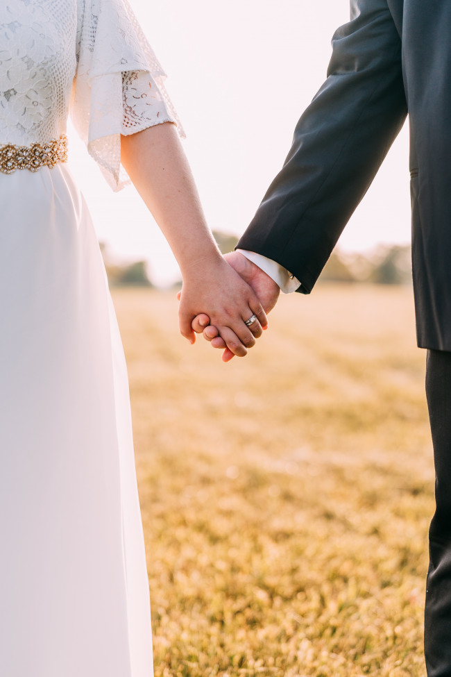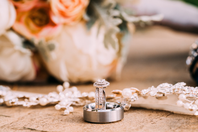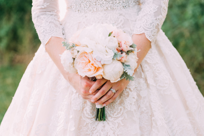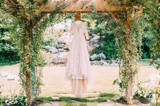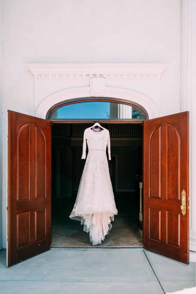 You may take some styled photos outside, and there are some things you can do to prepare! Have a little pair of flats ready to slip into while you’re walking to and from your location. Walking over rocks and through fields in heels and a wedding dress can get a little difficult! If your photographer doesn’t have a second person to help you with your dress, you can designate a friend to help carry your dress as you walk so it doesn’t get dirty.