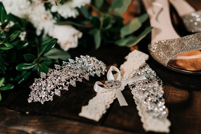If you have some leftover wedding decor like strips of fabric, flower petals, or lace, you can also set these out. Your photographer may use these in the flat lay with your accessories to tie in your wedding colors.