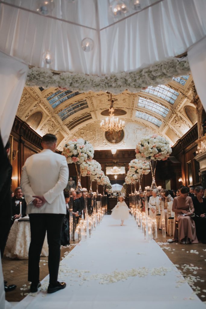 If I had to sum up the wedding theme in a few words, they would be feminine, romantic, and regal. We got married in an old English manor in Cheshire, about 30 minutes from my house. I definitely knew what I wanted. I used to look at bridal magazines at age 5, and ever since then, I’ve loved cream, white, and pale pink . . . and lots of candles — lots of flowers and candles