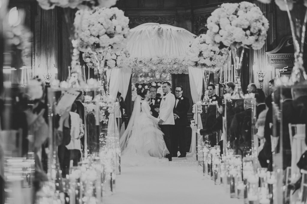 There was one big thing that didn’t go to plan, but thankfully, I was not in the room yet. At the end of the aisle runner near the altar were two massive fresh floral balls. Before I got there, because they were so heavy, one fell off its stand and spilled dirt everywhere all over the white runner. The wedding planners team then tracked through the dirt, so by the time I made it up to the altar, there were globs of white flower petals in the oddest formation on the runner. It all made sense after I heard the backstory. I’m just glad I was getting ready when it fell over