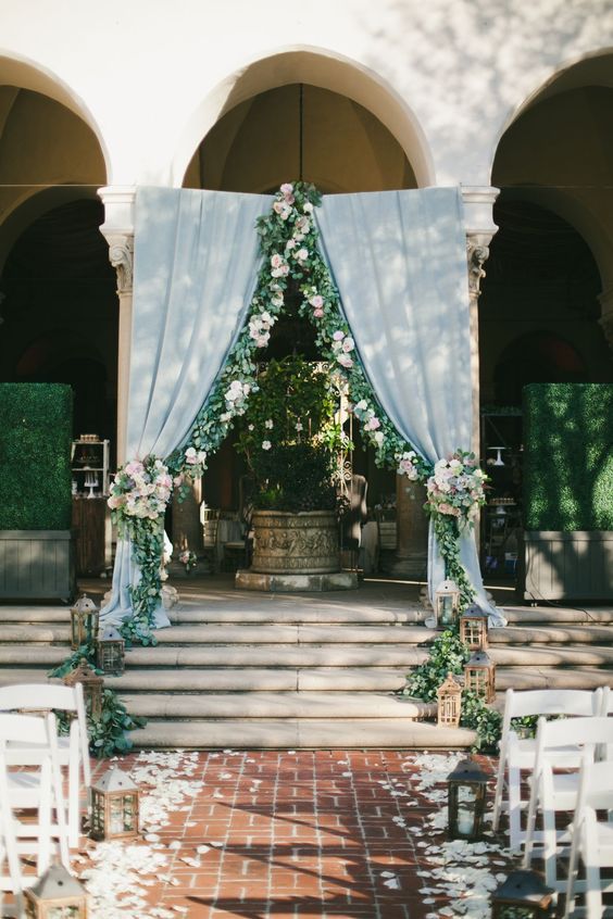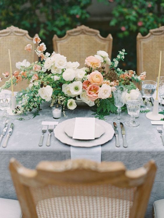 French Blue is a popular color this season, and it pairs beautifully with a variety of pastels and neutrals. It’s especially gorgeous mixed with blush and peach – spring colors, without a doubt! If you don’t already have a wedding board on Pinterest, I’ve just started one for you.