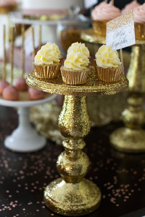 For starters, make your goodies memorable with some glitter and shine –either the edibles themselves, or their wrappers and stands: