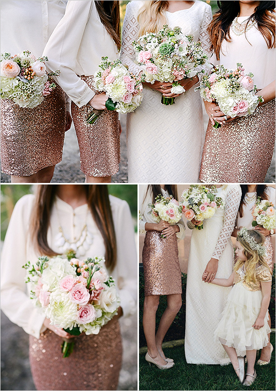 Of course, wedding apparel — yours or your bridal party’s — is always a great place to showcase the shimmer, as well…