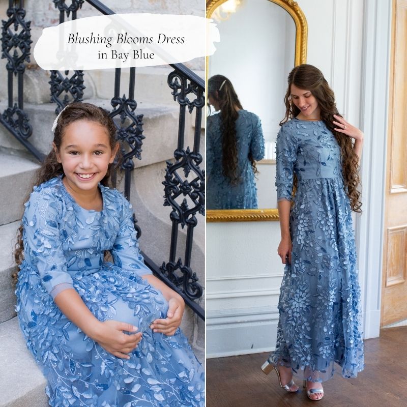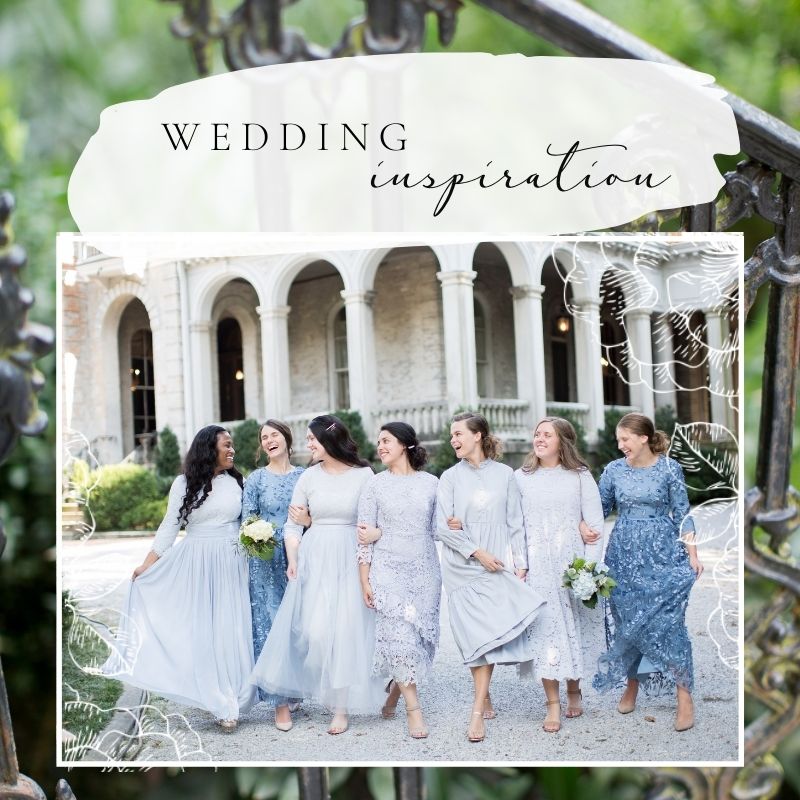 | How lovely is this color palette? French blue is one of the most popular wedding colors this season and we can't get enough of it! It pairs beautifully with so many other colors: blush, peach, sage...the list goes on and on. One wedding trend we are really loving is bridesmaid dresses of the same color family that are all a little different. The end result is original, eclectic and absolutely beautiful! We purposely design our formal dresses to be effortlessly mixed and matched. The combinations are endless! Below are just a few of our favorite blue dresses. Not only are these dresses exclusive to our collection - meaning you can't find them anywhere else! - but no modesty alternations are required, unlike other bridesmaid dresses, these dresses can easily be worn to other events and they're affordable for the amazing quality. If you're getting married this year or even if you're just a guest - you owe it to yourself to check out our diverse collection! We have dozens of dresses to choose from; from the flower girl, to the bridesmaids, mother-of-the-bride and the beautiful bride herself. Shop these styles and more at daintyjewells.com |